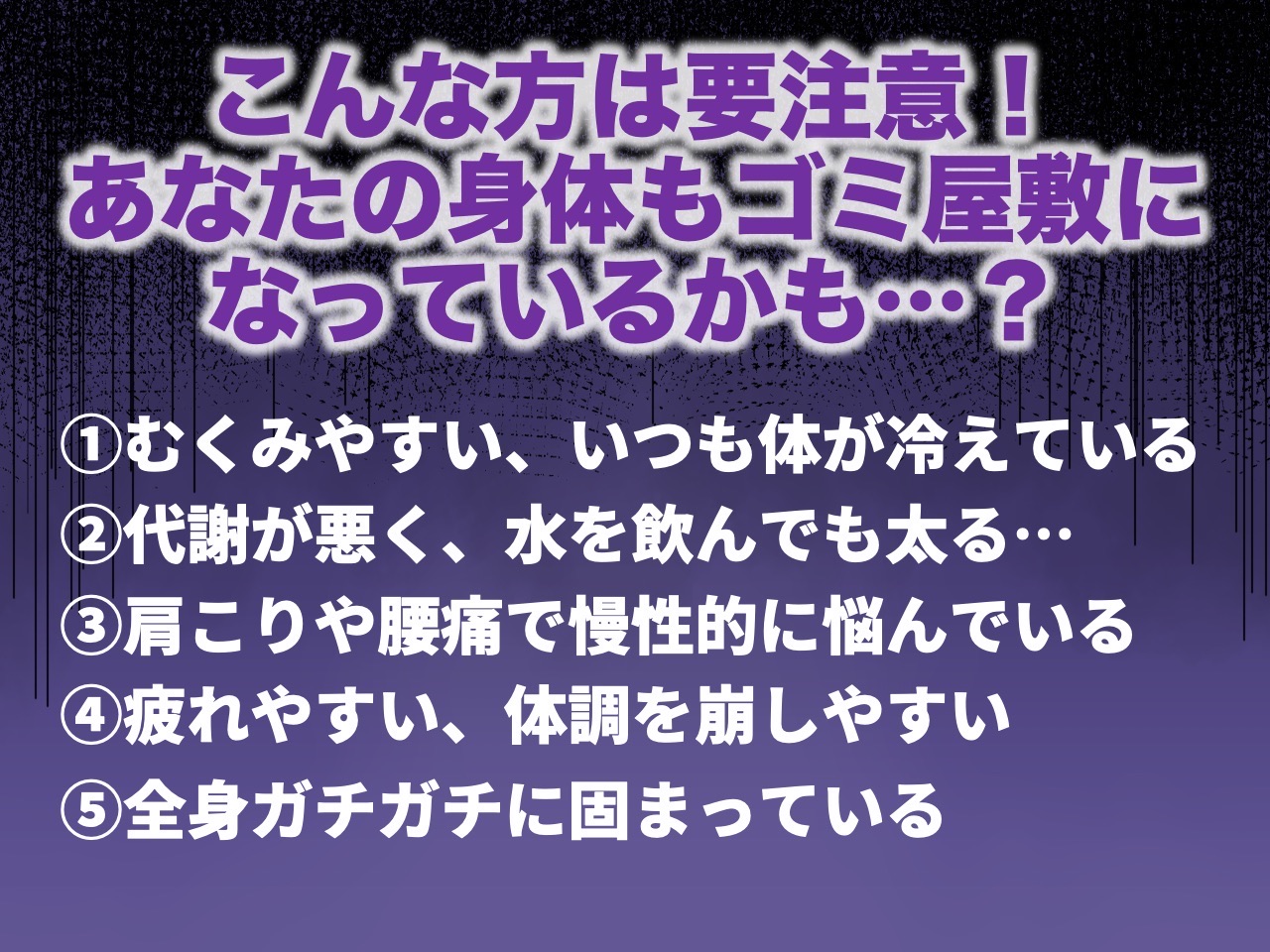 体の中に老廃物が溜まり、まるで“ゴミ屋敷”のような状態になっている方が増えています。